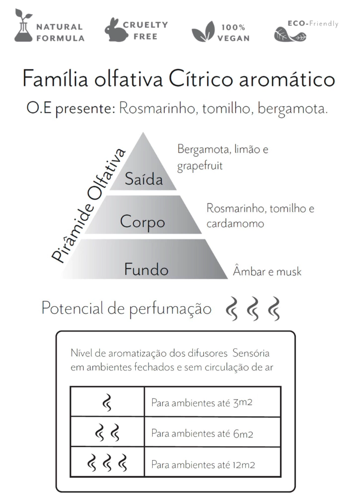 Óleos Essenciais Presentes: Rosmarinho, Tomilho e Bergamota