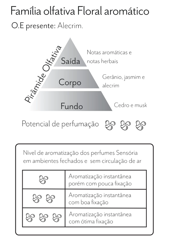 O alecrim, com seu toque herbáceo marcante, se une a flores delicadas e notas suaves de frutas, criando uma atmosfera de limpeza e sofisticação natural. Ideal para ambientes que pedem leveza, equilíbrio e frescor duradouro.