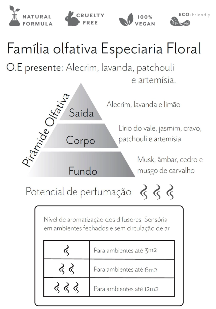 As notas suaves e envolventes deste perfume foram extraídas de óleos essenciais de madeiras brasileiras, resultando em uma composição aromática refinada, que traz leveza, frescor e requinte para qualquer ambiente.
